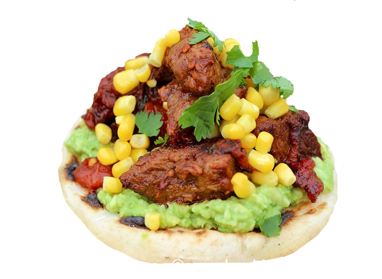 Carne, pollo, pico de gallo, queso, maíz tierno. $5.000